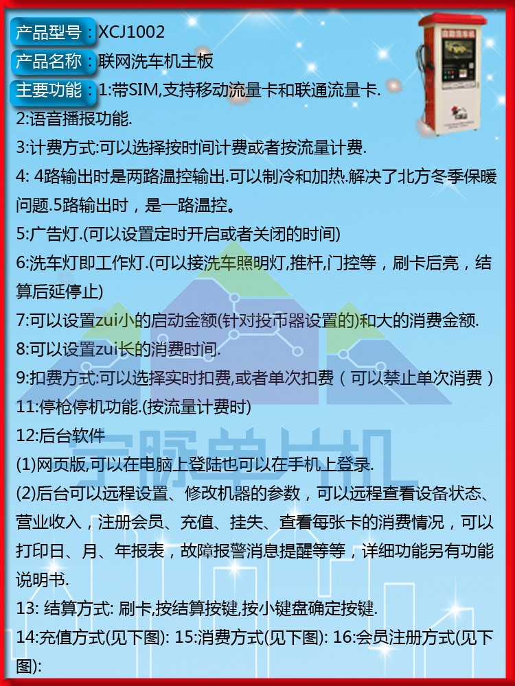 宇脉MCU单片机厂家,主控设备自助研发生产,自助洗车机控制器主板,联网多功能自助设备,支持定制开发,真正拥有自己的研发团队。多种支付方式如:投币、刷卡、微信、支付宝等方式,宇脉厂家自主研发的自助系统,系统会不定期的升级, 提供免费升级功能,让您的设备不落后于时代,社会在进步, 我们也在进步。我们坚守着“只有客户好,公司才能发展得更好”的理念,只要您相信我们,我们愿与您共同成就更好的未来,共同成长,共同发展,携手打造一体化智能智慧社区。社区一卡通,让您拥有大数据管理!
