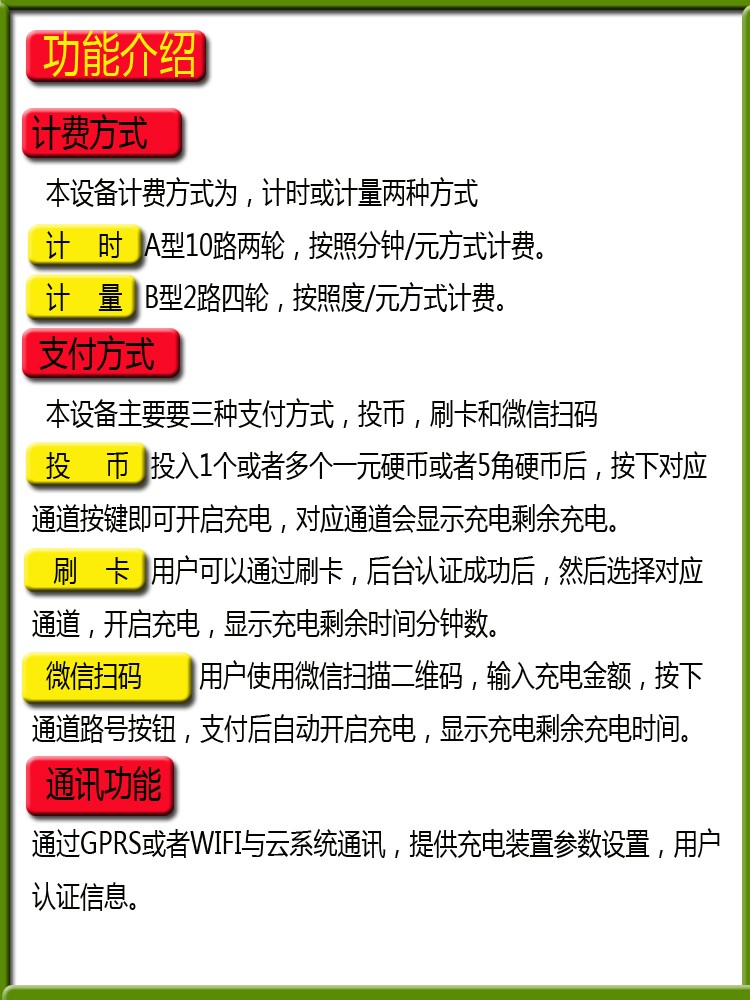支付方式:投币、刷卡、输手机号码+密码、微信/支付宝支付